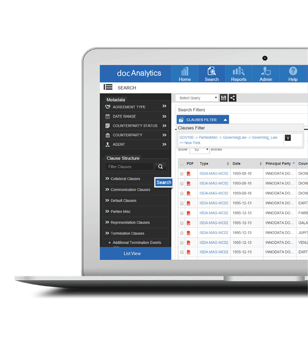 DocAnalytics is a cross-functional contract analysis platform that enables organizations to simplify complex business documents and contracts and facilitates the management of critical data from contracts, trade documents and agreements. The platform provides numerous advantages like automation of risk management, monitoring counterparty risk, portfolio risk management, collateral management and mitigation of covenant breaches among others.
