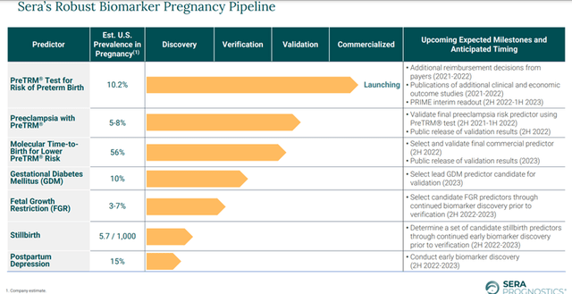 The Company has built a robust pipeline of candidates that are under the verification and validation stage such as Preeclampsia with PreTRM, Gestational Diabetes Mellitus (GDM), Fetal Growth Restriction (FGR) among others. Sera is also studying stillbirth and postpartum depression, which are currently in the discovery stage. Upcoming catalysts include PRIME interim readout in PreTRM® Test for Risk of Preterm Birth which is expected in the second half of 2022 or the first half of 2023.