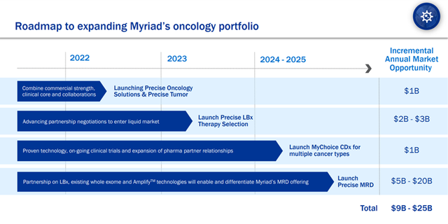 The Company’s oncology portfolio leverages its strength in hereditary cancer testing and companion diagnostics to offer an array of products that extend to ovarian, breast, prostate, and pancreatic cancer. Myriad is planning to expand its portfolio to include Liquid Bx treatment and Liquid Bx MRD.