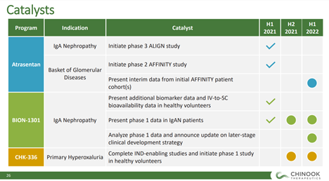 Company Profile: Chinook is a clinical-stage Company developing precision medicines that target rare and chronic kidney ailments with large unmet needs. The Company’s lead drug candidate is Atrasentan, which is currently undergoing a Phase 3 trial namely ALIGN and a Phase 2 trial named AFFINITY in IgA nephropathy and Glomerular diseases respectively.