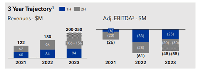 For FY23, Aspen has provided guidance of total revenue between $200 million and $250 million (an increase of between 11% to 39%, YoY), Adjusted EBITDA between $(55) million and $(45) million, and net loss between $85.0 million and $75.0 million.