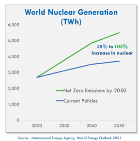 According to the International Energy Agency (IEA), nuclear energy is poised for global growth. Without new climate policies, carbon-free nuclear power is expected to grow almost 40% in the next three decades.