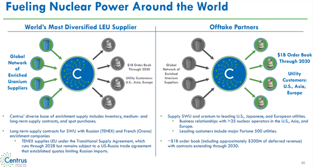 Centrus is the most diversified enriched uranium supplier to utilities in North America, Asia, and Europe, with a $1 billion long-term order book through 2030.