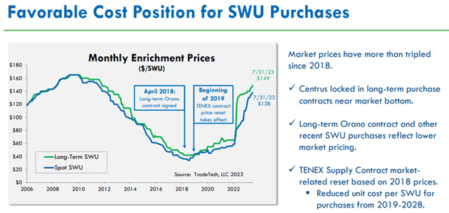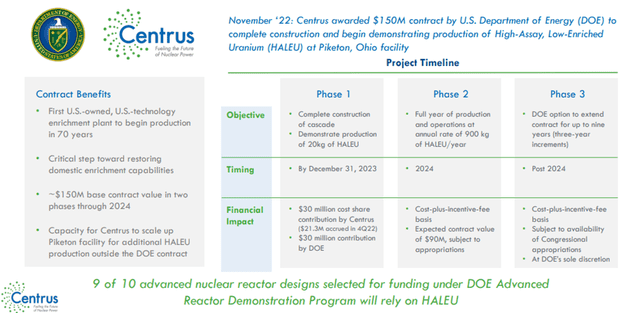 This is important because the Russian invasion of Ukraine has dramatically increased market prices for uranium enrichment. Subject to the availability of funding and offtake commitments, Centrus could deploy LEU production alongside HALEU production.