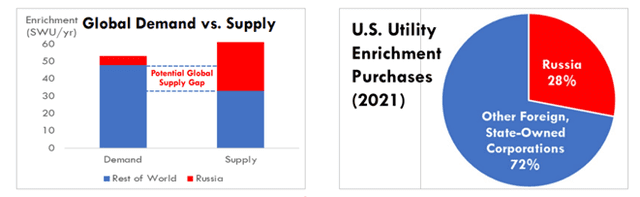 In 2021, U.S. utilities purchased ~4 million Russian-origin SWU (28% of U.S. demand), and transitioning away from Russia requires significant public-private investment and will take years to accomplish.