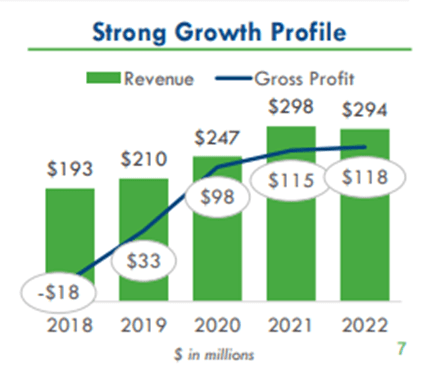 For FY22, the Company achieved a Gross Profit of $118 million and Gross Margin and Operating Margin of 40% and 20%, respectively. The Net Operating Loss Balance stood at $781 million on 12.31.2022, and the Company had a cash balance of $213 million on 6.30.2022.