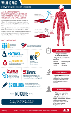 Amyotrophic Lateral Sclerosis (ALS) or Lou Gehrig’s disease is a progressive neurodegenerative disease, characterized by the atrophy of nerve cells in the brain and spinal cord, leading to hardening and scarring in the affected region. As the disease progresses, patients gradually lose the functioning of muscles, including those that control speech, movement and breathing. The disease manifests in two forms, sporadic and familial, with 90 to 95 percent of all cases in the U.S being Sporadic. Familial or the inherited form of the disease constitutes the other 5 to 10 percent.