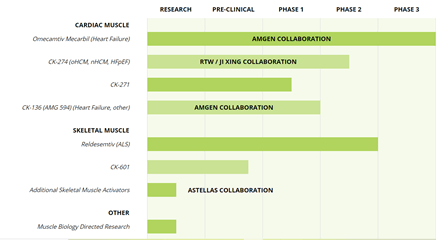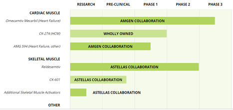 has entered into strategic collaboration with Companies such as Amgen (NASDAQ: AMGN), RTW/XI JING, and Astellas (OTCPK: ALPMY) to develop and commercialize its diverse pipeline. The Company is developing omecamtiv mecarbil, a selective cardiac myosin activator, intended for the treatment of heart failure with reduced ejection fraction (HFrEF). The candidate has undergone seven phase 2 clinical trials, which evaluated its safety, efficacy and tolerability in patients with chronic heart failure and left ventricular systolic dysfunction.  The Company is currently engaged in two phase 3 clinical trial namely, GALACTIC-HF (Global Approach to Lowering Adverse Cardiac Outcomes Through Improving Contractility in Heart Failure) and METEORIC-HF, (Multicenter Exercise Tolerance Evaluation of Omecamtiv Mecarbil Related to Increased Contractility in Heart Failure).