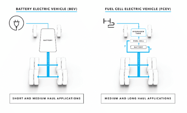 Due to higher barriers to entry, there are fewer competitors in the FCEV Class 8 market as compared to the BEV market. However, Hyundai and Toyota have chosen to focus their efforts on FCEV as the powertrain of the future. Hyundai has announced plans to offer FCEV trucks and invest in hydrogen stations for refueling. Toyota is collaborating with Kenworth. Daimler and Volvo announced a proposed joint venture to develop fuel cell systems for heavy-duty trucks. Other potential competitors include Navistar, Hino and Hyzon.