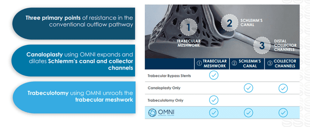 OMNI is a handheld, single-use, therapeutic device that allows ophthalmic surgeons to reduce elevated intraocular pressure (IOP) in adult glaucoma patients. SION is a bladeless, manually operated device used in ophthalmic surgical procedures to excise trabecular meshwork, which is the tissue located near the cornea through which aqueous humor, or fluid, flows out of the eye.